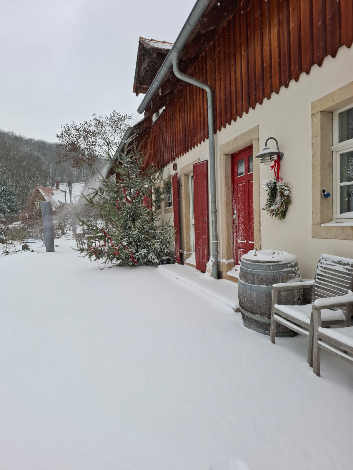 Zum Jahresbeginn wurden wir mit winterlichen Stimmungen im Weinberg beglückt und sogar der Weihnachtsbaum auf unserem Hof bekam noch eine Schneedecke vor dem 6.1. Sobald der Boden im Berg wieder sicher begehbar ist starten wir mit dem Winter-Rebschnitt - in dicken Socken & Schuhen und mit warmer Mütze.