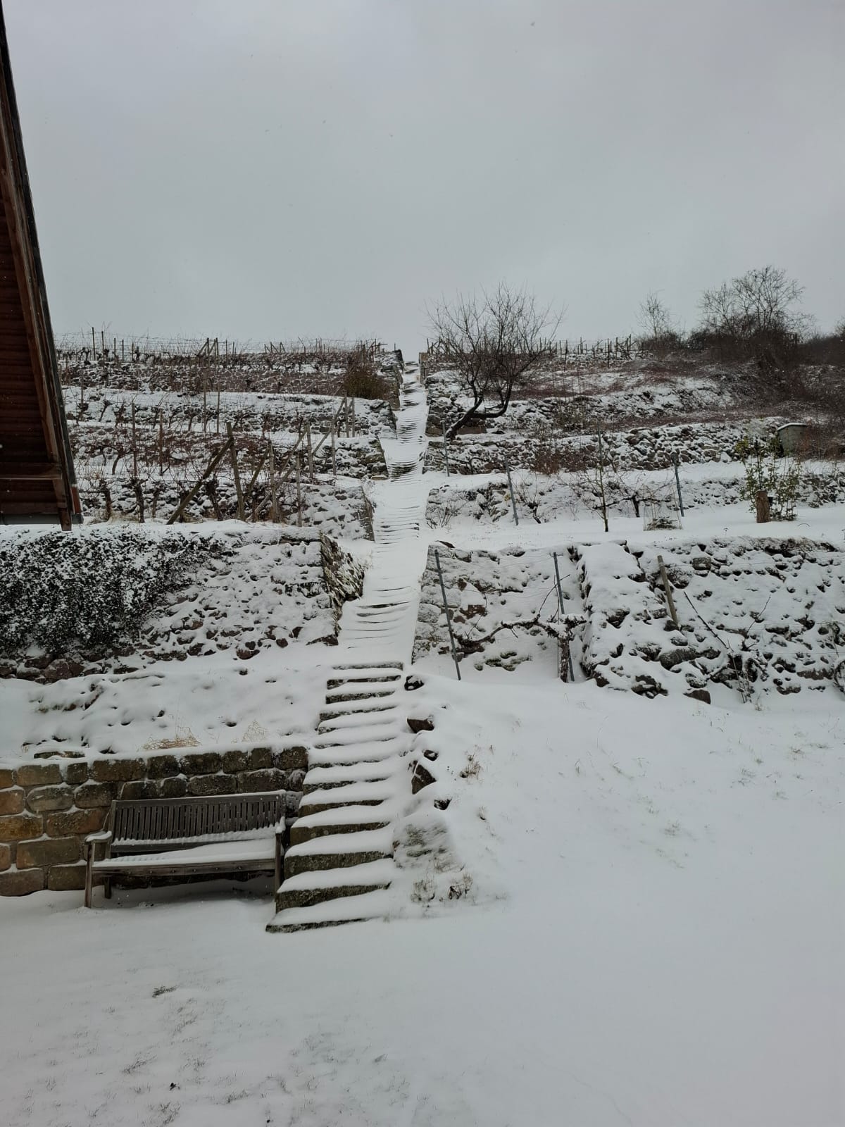 Über Nacht hat es 15 cm Neuschnee gegeben - unser Weinberg versinkt in winterlicher Pracht!